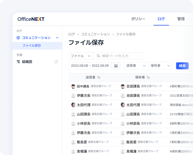 メッセンジャーの使用状況や添付ファイルの管理が一目で分かり、セキュリティリスクの予防に大変役立っています。特に監査時の報告書作成が容易になりました。